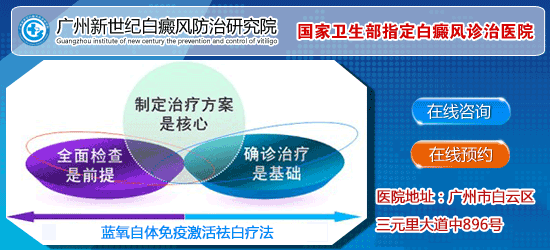 广州新世纪白癜风防治研究院深入贯彻质量建院、服务兴院的方略,认真落实以病人为中心,以质量为核心的思想,积极 开展无假日门诊的绿色通道,依靠优质的服务、优秀的人才、优势的技术、优良的设备、优美的环境,努力为广大病员朋友提供优质、高效、 放心、贴心、便捷的医疗服务。患者、质量、信誉是医院的服务宗旨,我院将以优质的服务、先进的技术、优美的环境迎接每一位前 来就医的患者。我院引进并改进了目前上先进白癜风疗法“多维白癜风康复工程”,经临床治疗验证,疗效显著,是白癜风患者治疗的 理想选择。