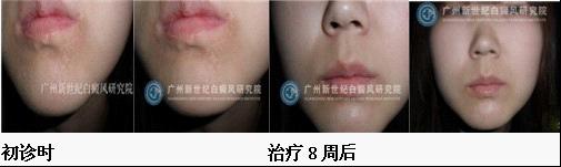 检查:患者嘴唇周围有散发白癜风症状,医生根据检查报告和医生组会诊结果,认为可能是饮食结构不合理导致免疫力低下、微量元素缺失诱发白癜风。