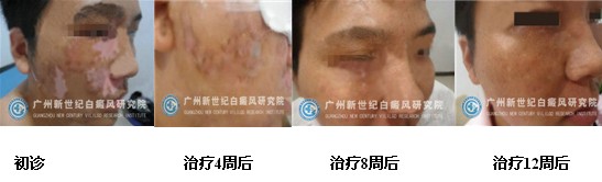 ▲病史:患者4年前面部出现白斑,多年来呈现逐渐扩散趋势。曾经尝试使用偏方药剂治疗,但是康复效果不佳,并更严重今来我院治疗。
