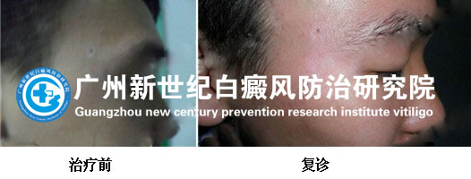 治疗用药一个月左右,白斑边界清楚,经检查病情已基本稳定,白斑病灶明显色素生白斑面积逐渐缩小,几乎消失。