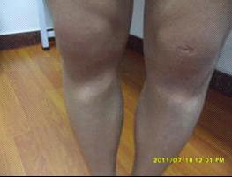 主诉:双膝盖关节、前胸、下腹部均有白斑 病症:患者患白癜风有8年多的时间,刚开始是左膝盖上出现白斑,过了没多长时间,右膝盖上也出现白斑。后来发展成前胸、下腹部均有白斑,并在扩散中,曾今去医院治疗过,采用口服药剂,但效果不佳。近来发现白斑扩散速度加快,特来我院就诊。 检查:1、微量元素:铜离子低下 2、微循环:轻度异常 3、伍德灯:双膝盖关节、前胸、下腹部均有块状白斑,双膝盖关节的白斑黑色素脱失85%,前胸、下腹部白斑的黑色素均脱失50%左右。 4、自体免疫系统检查:异常 诊断:散发型白癜风(发展期) 治疗:医生首先采用七大检查系统为患者做了详细全面的检查,在确定具体的病症情况下,根据科学的诊断结果,医生为其进行了“多维白癜风康复工程”,以“美国新一代308nm准分子光”为核心治疗技术,结合汽疗、机体免疫调理,并加以个性食疗、神疗辅助治疗,经过3个多月的治疗,该患者的白斑已经消失,完全康复。 |