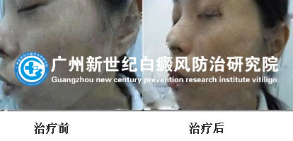 病史:脸部散发性白斑两年,白斑周围边界较为模糊,呈现散发性趋势,且比较严重