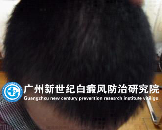 (治疗6个月后,患者头顶的白斑已经完全消失,白斑处的白发也已长成黑发)