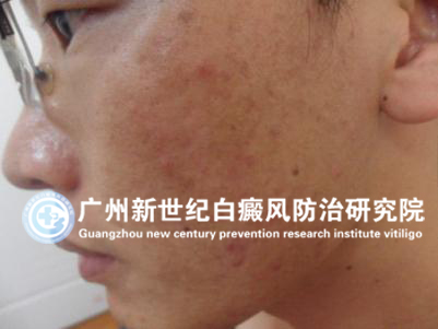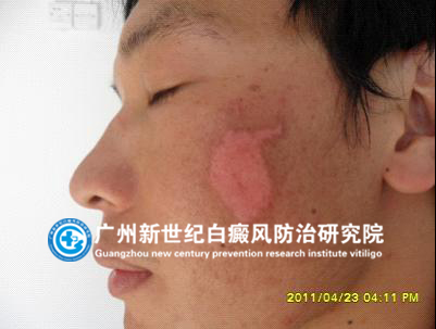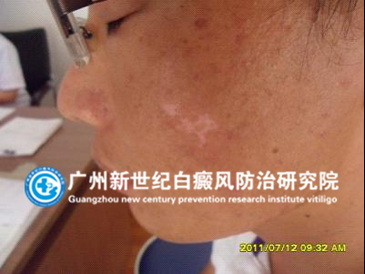 (治疗不到3个月,患者左脸上的白斑已经明显内缩、减淡)