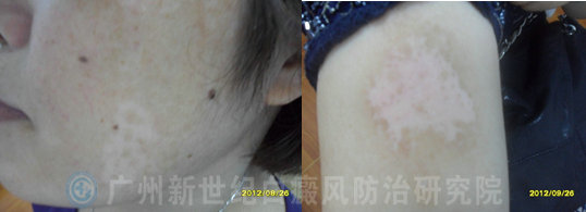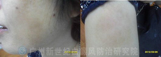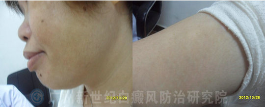 (治疗1个月后,患者脸颊及手臂部位的白斑渐渐消失)