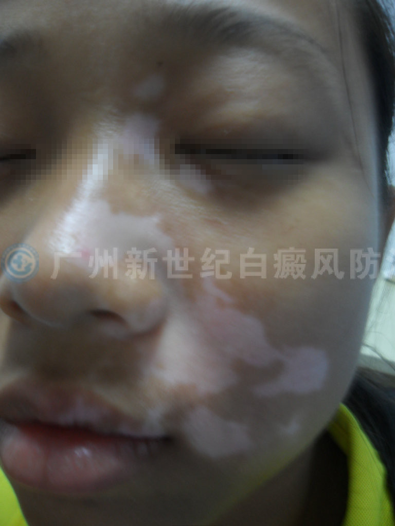▲主诉:两年前面部出现白斑,后不断扩大、增多,身体其它部位也陆续出现白班。