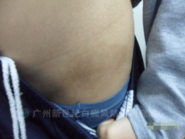 六七年前黄同学发现髂部不知道是什么原因出现了大片的白斑,但是不痛不痒,又不在暴露部位,就没有管它,后来白斑扩散到腰部,大腿内侧,甚至鼻部。严重影响了影响,对于一个青春期爱美的女性来说这是不可接受的,黄同学的父母带她到深圳一家医院治疗,确诊为白癜风,治疗了很长时间都没有好的效果,后经朋友介绍来到广州新世纪白癜风防治研究院。