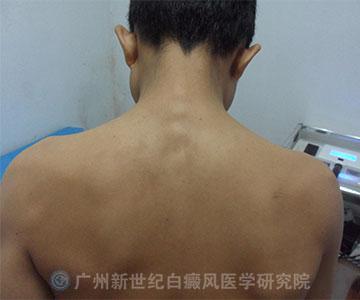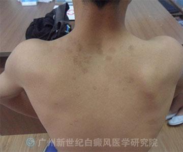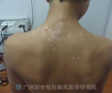 小杨,12岁,山东济南人,他是一名活泼可爱的小学生,小杨的妈妈说,儿子不仅乖巧且懂事,而且学习成绩也是非常的优秀,老师都常常夸赞小杨是一位品学兼优的好学生。小杨的妈妈说:自从五个月前儿子的身上长了白癜风白斑,这一切都变了,孩子的心灵毕竟是脆弱的,刚开始的时候他还坚持去上学。可是后来,小杨说同学们老叫他怪物,取笑他,和他玩的好的小朋友也渐渐疏远他,孩子的自尊心受不了,无论父母怎么劝说,孩子就是不肯去上学,家人为此都几乎要崩溃了,小杨的妈妈说每次看到儿子因自卑而犹豫的样子,她都会十分自责。