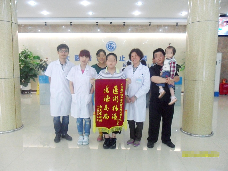 李诚英医生亲切的询问了孙小朋友的病情,详细问诊和检查后发现,孙小朋友左侧嘴角的白斑为局限型白癜风,目前尚在发展期。 在李医生的建议下,孙小朋友的父母让孩子接受了“美国新一代308nm准分子光治疗系统”,辅以微量元素的补充。治疗不到2个月,孙小朋友左侧口角的白斑已经明显内缩、减淡;治疗4个月,孙小朋友左脸上的白斑已经消失,白斑处的皮肤与正常肤色无异样。孙小朋友的父母非常感激李医生,特地送来了锦旗。