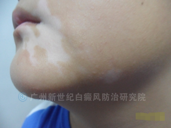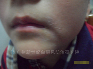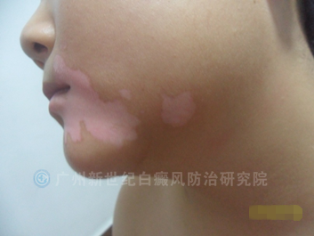(治疗不到2个月,患者脸上的白斑已经明显缩小,减淡)