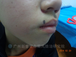 (治疗2个月余,患者右嘴角部的白斑已经明显减轻)