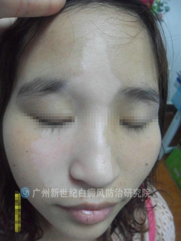 三个月的治疗后,患者原白斑部位恢复正常肤色。进入巩固治疗阶段,以饮食调理为主。同时提醒患者定期来院检查,以防白斑复发。