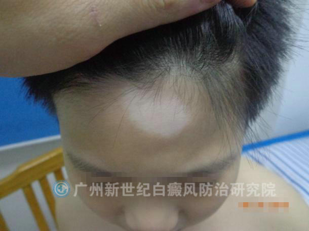 (初诊时,患者头部白斑明显)