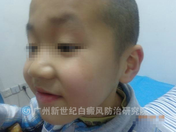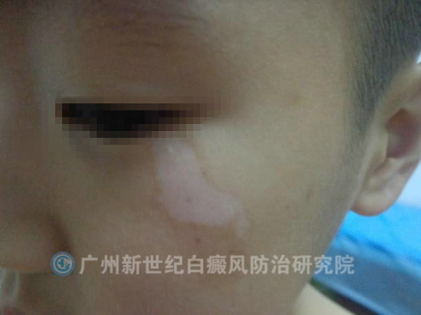 ▲病史:患者于一个月前无明显诱因发现左脸颊白斑,曾在广州市妇幼医院治疗,曾运用外用药(他克莫司)治疗后,效果不佳,且白斑部位逐渐融合扩大至左手上臂和腿部,对饮食、作息时间等方面也未能引起重视,恐其继续发展,故今日特来我院就诊。