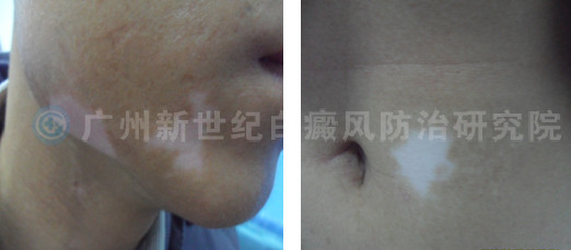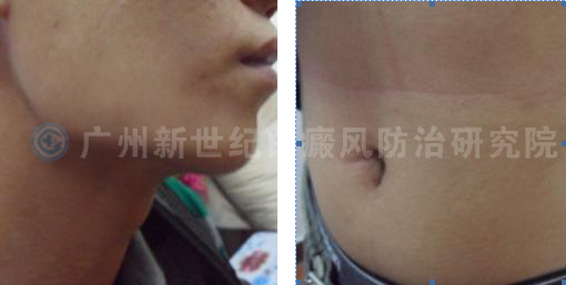 (图:治疗不到两个月脸部、腹部白斑明显减少)