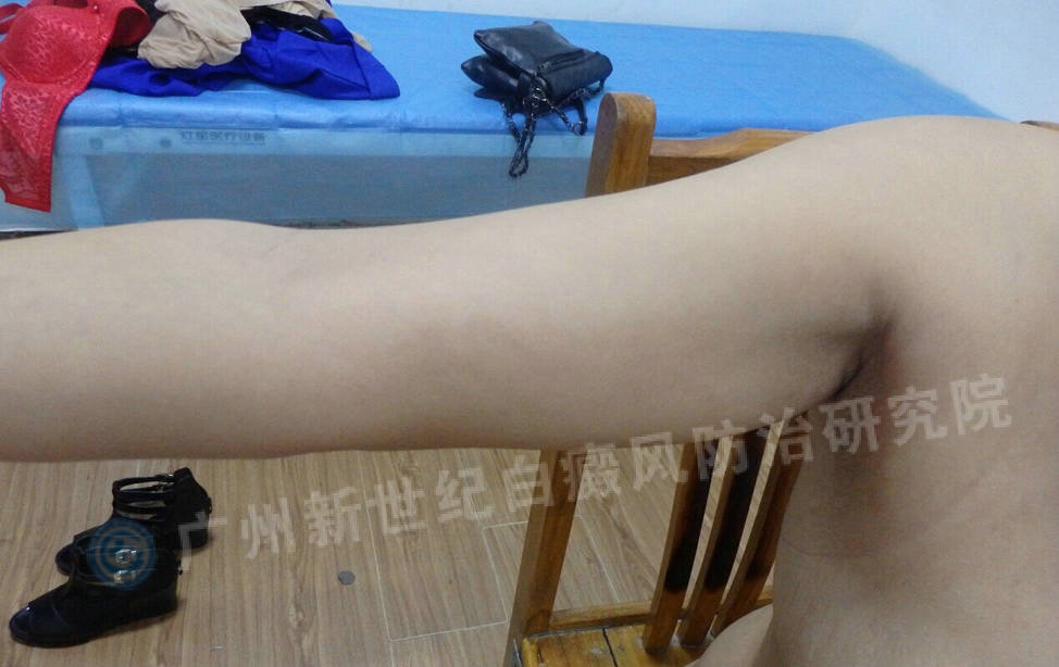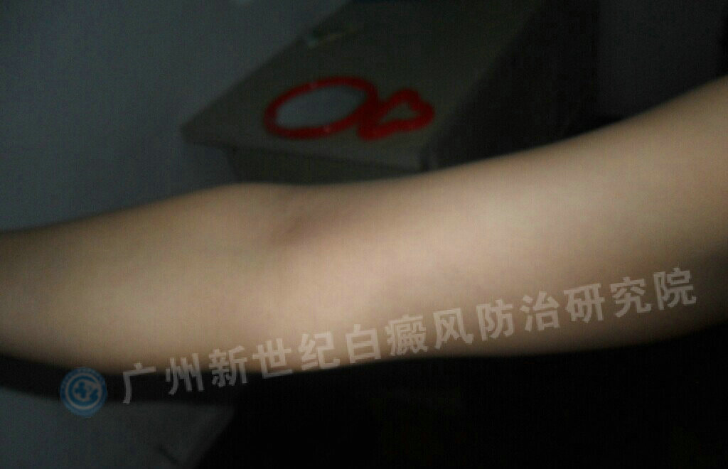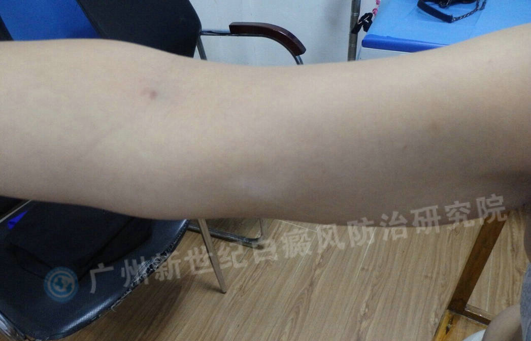 ▲病史:2个多月前右侧手臂出现白斑,在药店买过药膏治疗但效果不佳,且白斑有扩张态势,为求更进一步治疗,特来我院就诊,现已康复。