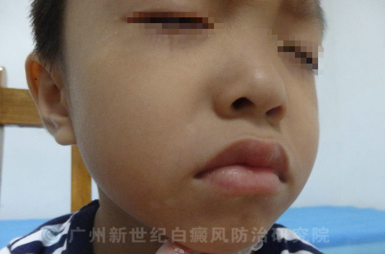 4个月前家长发现陆小朋友脸部有点状白斑,刚开始家长也没在意,以为是受伤后留的疤痕,后来白斑进一步扩散变大,家人才引起注意,后经当地医院确诊为白癜风。经过一段时间的治疗,没有好转,于是陆小朋友家人放弃了治疗。同龄人在欢乐玩耍的时候,陆小朋友因为其他小朋友对他“怪小孩”的称号,变得整天闷闷不乐,躲在家里不愿意出门,之前那个整天欢笑的陆小朋友不见了。
