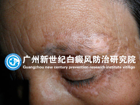 治疗前眼镜、眉毛周围散布着白斑