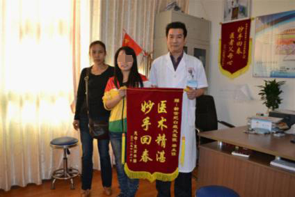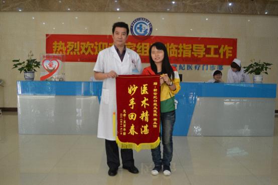 在广州新世纪白癜风防治研究院,医生和护士热情地接待了她。在为她做了详细地检查之后,梁景峰医生为她制定了治疗方案,并叮嘱她要坚持治疗以及日常所需注意事项等。经过了一个疗程的治疗之后,夏小姐眼睑上的白斑逐渐淡去并转为健康肤色。激动万分的夏小姐,特地定制了一面锦旗上门致谢。在广州新世纪白癜风防治研究院和梁医生合影时候刚好久被记者碰上了。