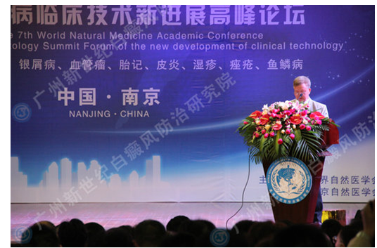 2013年10月24日下午,由世界卫生组织督办,世界自然医学联合总会联合南京自然医学会共同主办的“第七届世界自然医学学术大会暨皮肤病临床技术新进展高峰论坛”,在江苏南京中医药大学盛大胜利召开!来自、美国、英国、澳大利亚、智利、日本、台湾、香港、澳门等地区的300多位医学医生、学者共同参与了此次高峰论坛。此次大会上,发布了《2013皮肤病人群健康白皮书》,来自各国各地区知名皮肤病医生就白癜风问题,从社会、疾病研究、临床技术等多个层面展开深入讨论,并大力推广新技术。