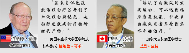 以广州新世纪白癜风防治研究院刘斌医生领头研创的“蓝氧自体免疫激活区白疗法”实现了中西医学的完美结合,以自身血液净化功效,阻断白癜风发病根源,开创了血液祛白新纪元,以零复发、无伤痛治愈被北美国家相继引进临床治疗中去,让中国白癜风诊疗从此登上国际舞台,成为国内首项获得世界卫生组织(WHO)大力推广的白癜风临床技术。