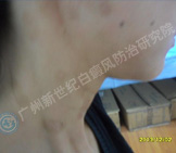 何女士因为一次小的外伤致使皮肤过敏,继而出现少量白斑白点。因为对白癜风不了解,何女士去药店买了维生素C服用,结果导致白斑越来越大。两耳前、额头、颈部都相继出现了大片白斑,令何女士越发慌张,整日郁郁寡欢,不敢见人。