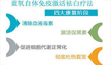 广州蓝氧技术的四大康复阶段:靶向病变源头清除血液毒素,激活促黑素促进黑素细胞增殖,激活促黑素促进黑素细胞增殖,重建免疫机制防止复发,随血液循环转移到体内各个淋巴器官,形成进步的多级免疫反应链,使被破坏的受损组织及免疫系统得到恢复。