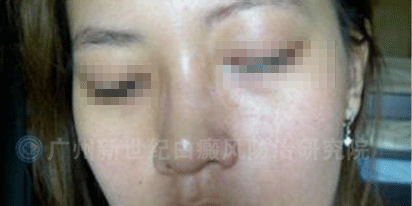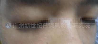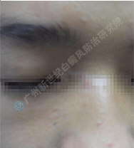 概述:易同学,14岁,广州人,右侧眼角片状白斑,大小不等,形状各异,边界模糊不清。来到广州新世纪就诊,两个疗程,就已痊愈,复诊未见复发。