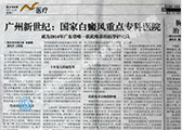 2014年12月1日:广州新世纪被评为“全国白癜风十佳医院”,医院多年来连续摘取该荣誉称号。