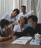概述:周女士于30年前无明显诱因额头出现小片状浅白斑,后扩大,在多家医院治疗无果。图为梁京峰主任为其病情治疗而忙碌着。